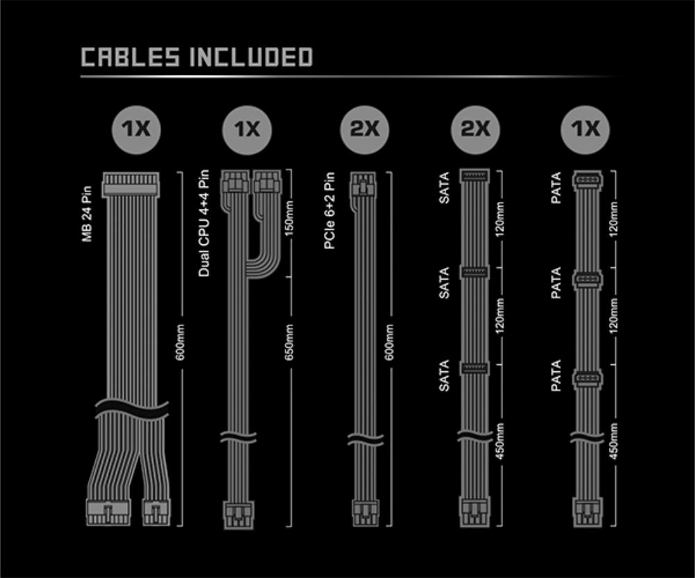 | ATX 20+4pin konektor | 1x / 1x (600 mm) |