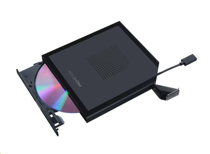 Externá DVD mechanika a napaľovačka ASUS ZenDrive V1M so zabudovaným káblom, rozhranie USB-C®, kompatibilná so systémami Windows 11 a macOS, podpora M-DISC, komplexné riešenia zálohovania v balení