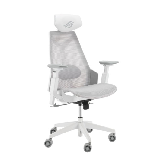 Herná stolička ROG Destrier Core ergo s futuristickou estetikou, všestranným nastavením sedadla pre dokonalé držanie tela, mobilnú hernú opierku rúk a vyrobená z odolného polyamidového nylonu a priedušnej sieťoviny pre pohodlné herné maratóny.