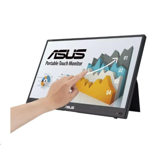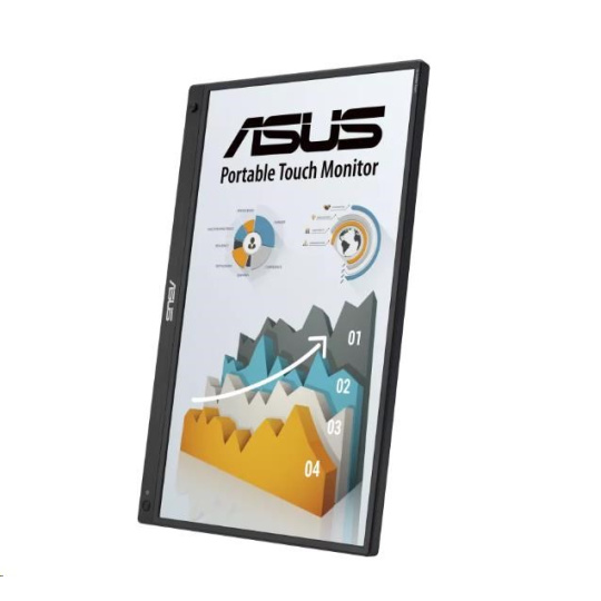 16" (15,6" zobraziteľný), Rozlíšenie FullHD (1920 x 1080), IPS, 10-bodový dotyk, vstavaná batéria, riešenie hybridného signálu, Mini-HDMI, ergonomický stojan, sánočka na statív, technológia ASUS Flicker Free a Low Blue Light, Kompatibilné s notebookmi, smartfónmi a hernými konzolami