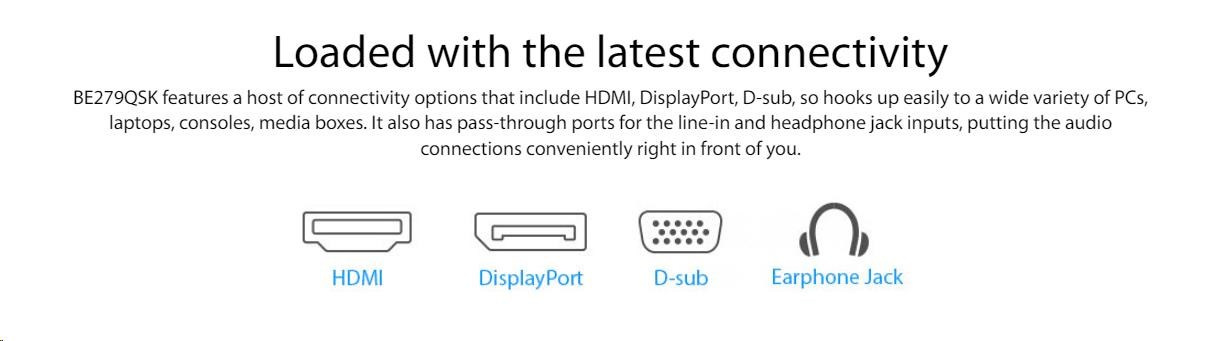 rozsiahle možnosti pripojenia s DisplayPortom, HDMI, D-sub, audio vstupom a konektorom pre slúchadlá pre čo najväčšiu flexibilitu.
