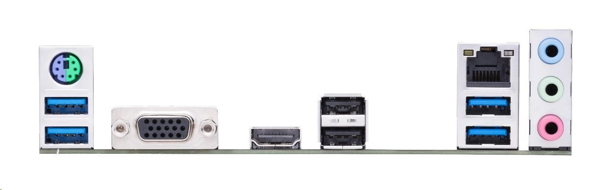 | Zadné I/O porty | 1 x kombinovaný(é) port(y) klávesnica/myš PS/2 1 x D-Sub 1 x HDMI 1 x port(y) LAN (RJ45) 4 x USB 3.2 Gen 1 (modrý) Type-A 2 x USB 2.0 3 x audio konektor(y) |
