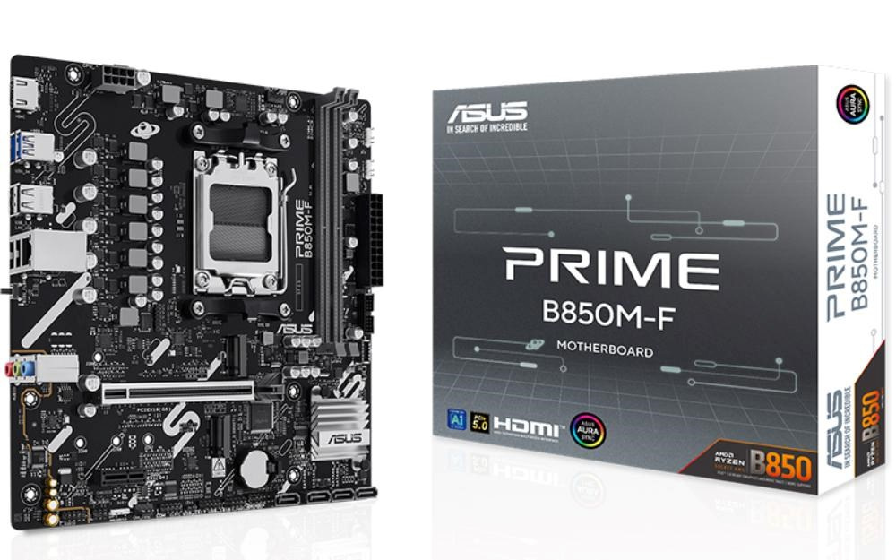 Na základe čipovej sady AMD B850 je základná doska ASUS PRIME B850M-F navrhnutá tak, aby pojala procesory AMD Ryzen 7000/8000/9000 na sokete AM5. Je ideálna na skladanie herných alebo multimediálnych konfigurácií. Lacnejšia ako čipová sada X870, podporuje DDR5, grafické karty PCI-Express 5.0 a PCIe 5.0 M.2 SSD.