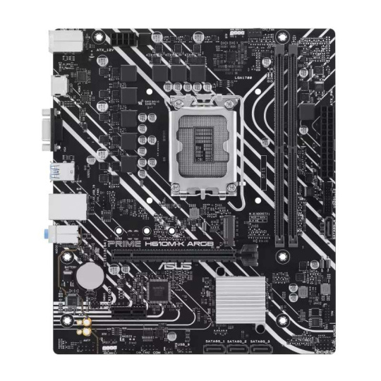 Intel® H610 (LGA 1700) micro-ATX motherboard, DDR5, PCIe 4.0, M.2 slot, Realtek 1 Gb Ethernet, HDMI™, VGA, USB 3.2 Gen 1, SATA 6 Gbps, Addressable Gen 2 headers, Aura Sync