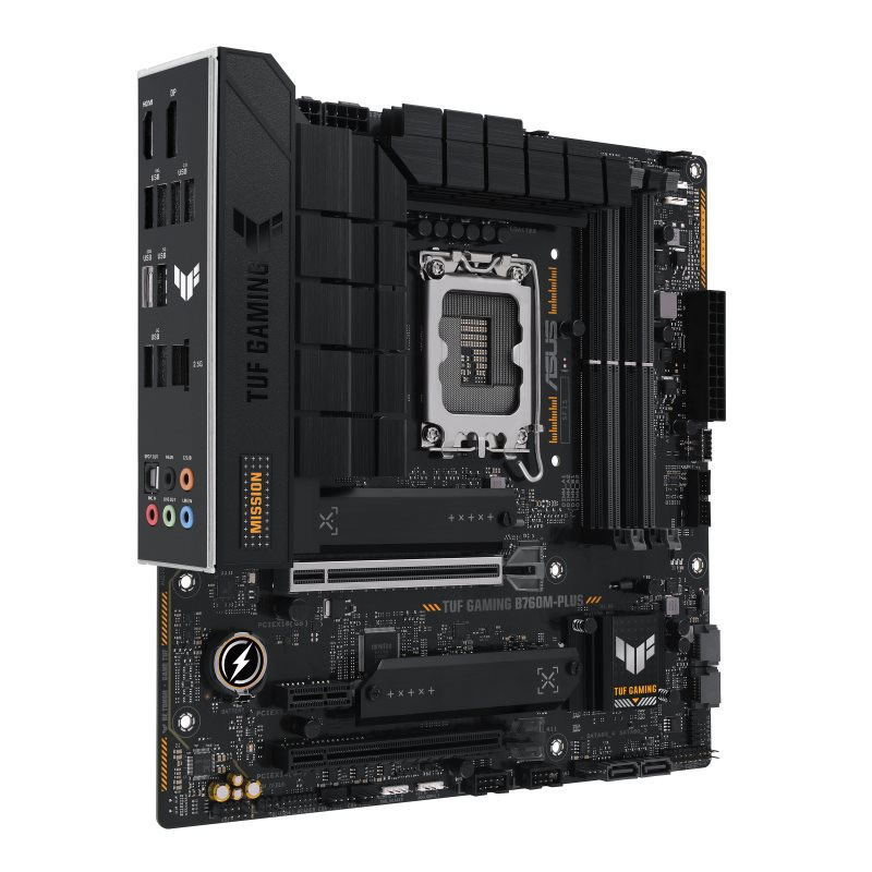 TUF GAMING B760M-PLUS takes all the essential elements of the latest Intel® processors and combines them with game-ready features and proven durability. Engineered with military-grade components, an upgraded power solution and a comprehensive cooling system, this motherboard goes beyond expectations with rock-solid performance for marathon gaming. TUF GAMING motherboards also undergo rigorous endurance testing to ensure that they can handle conditions where others may fail. Aesthetically, this model incorporates an embossed nameplate and geometric design elements to reflect the dependability and stability that defines the TUF GAMING series.