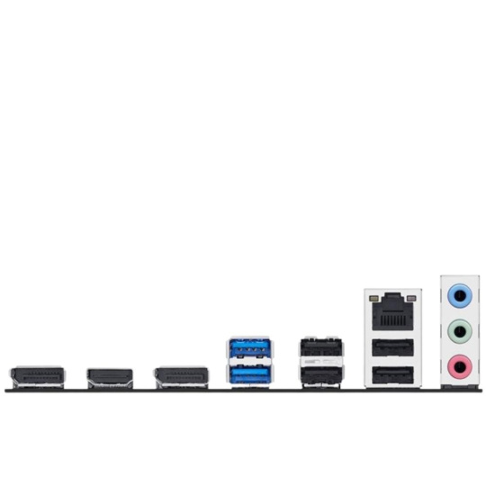 Predný USB (celkovo 5 portov): 1 x USB 5Gbps konektor (Typ-C®), 1 x USB 5Gbps header (2 porty), 1 x USB 2.0 header (2 porty)
