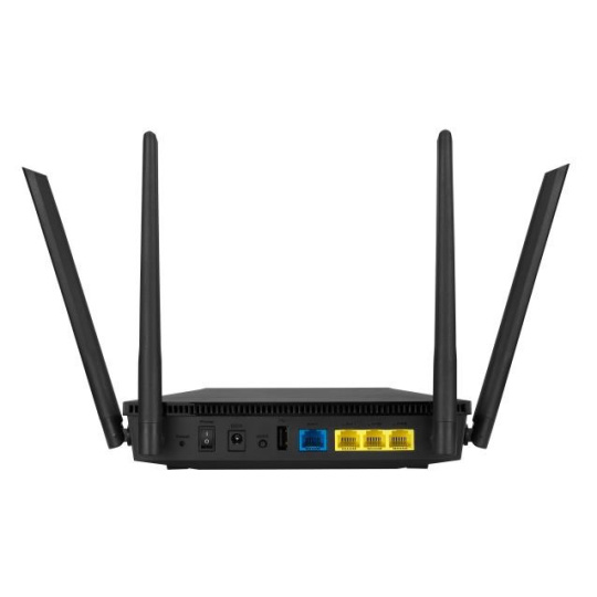 AX1800 Dual Band WiFi 6 (802.11ax) Router supporting MU-MIMO and OFDMA technology, with AiProtection Classic network security powered by Trend Micro™ New-Gen Wi-Fi Standard – 802.11ax Wi-Fi standard supporting MU-MIMO and OFDMA technology for better efficiency and throughput. Connect in your way – You can share the internet from 3G/4G dongle to the router by plug the dongle in a USB port. Ultra-fast Wi-Fi Speed – RT-AX53U supports 1024-QAM for dramatically faster wireless connections. With a total networking speed of about 1800Mbps — 574 Mbps on the 2.4GHz band and 1201 Mbps on the 5GHz band. Increase Capacity and Efficiency – Supporting not only MU-MIMO but also OFDMA technique to efficiently allocate channels, communicate with multiple devices simultaneously 4 Gigabit ports – One Gigabit WAN port and three Gigabit LAN ports, 10X faster than 100–Base T Ethernet. AiProtection and Parental Controls – helps keep your network protected and allow you to set the time limit for a client's network usage Wi-Fi 6 Wireless AX1800 Dual Band Gigabit Router 802.11ax, 1201Mbps (5GHz) 802.11ax, 574Mbps (2.4GHz) 2.4Ghz/5Ghz con-current dual-band, 4 fixed antennas, OFDMA + MU-MIMO tech, 1024 QAM, AiProtection Classic, Adaptive QoS, Dual WAN support, Access point/ Repeater/media bridge mode 3/4G Dongle support.