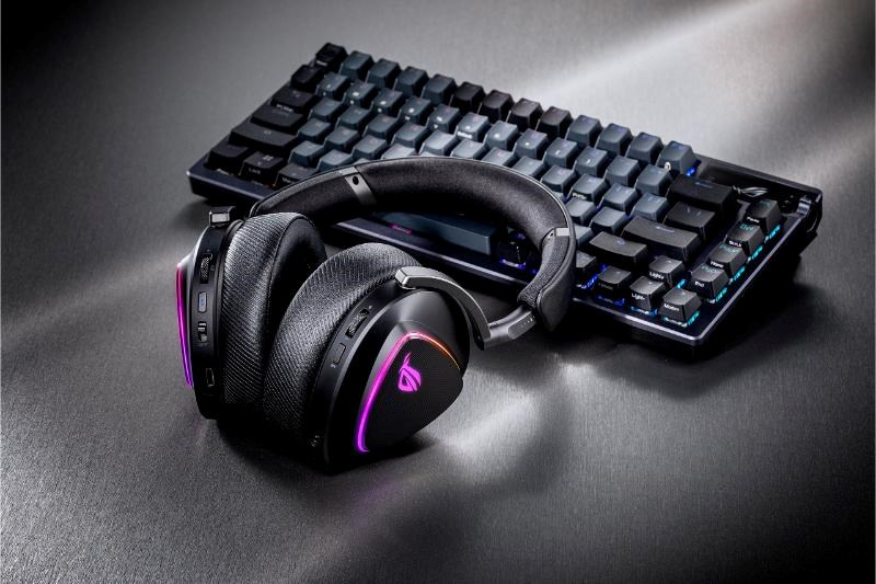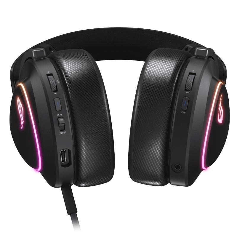 Bezdrôtová herná náhlavná súprava v troch režimoch s ROG SpeedNova, 50mm drivery s titanovou membránou a vyladeným zvukom, 10mm super širokopásmový mikrofón, DualFlow Audio, výdrž batérie až 110 hodín, ľahký dizajn 318 g, plus RGB osvetlenie ASUS Aura Sync
