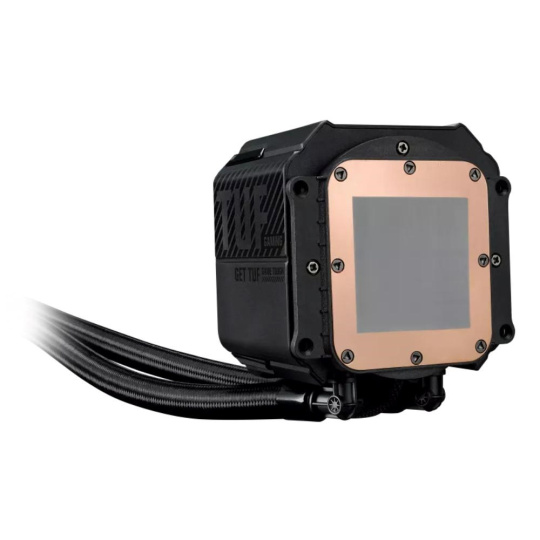 TUF Gaming LC III 360 ARGB all-in-one vodný chladič CPU s predinštalovanými a integrovanými trojitými ventilátormi navrhnutými pre vysoký prietok vzduchu a statický tlak; účinné čerpadlo na zabezpečenie optimálnej prevádzkovej teploty CPU.