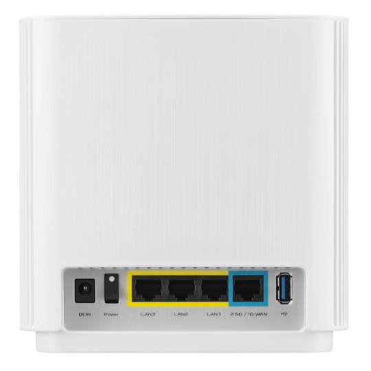 Wireless AX7800 Tri Band 2.5Gigabit Router WiFi 6 (802.11ax), 2402Mbps (5G-1) Wi-Fi 6 (802.11ax), 4804Mbps (5GHz-2) Wi-Fi 6 (802.11ax), 574bps (2.4GHz) Whole home mesh wifi system for large and multi-story homes Supports flexible SSID setting, wired inter-router connections AiProtection Pro network security powered by Trend Micro Ethernet 2.5Gigabits WAN x 1, LAN x 3 USB 3.1 Gen 1 x 1.