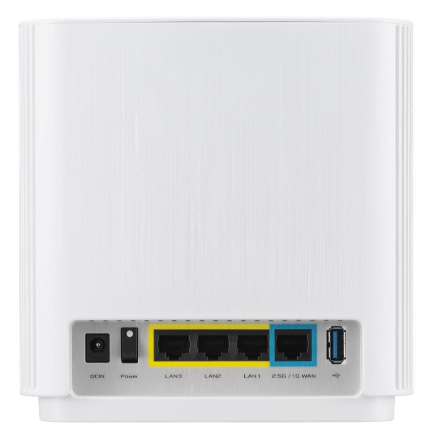Wireless AX7800 Tri Band 2.5Gigabit Router WiFi 6 (802.11ax), 2402Mbps (5G-1) Wi-Fi 6 (802.11ax), 4804Mbps (5GHz-2) Wi-Fi 6 (802.11ax), 574bps (2.4GHz) Whole home mesh wifi system for large and multi-story homes Supports flexible SSID setting, wired inter-router connections AiProtection Pro network security powered by Trend Micro Ethernet 2.5Gigabits WAN x 1, LAN x 3 USB 3.1 Gen 1 x 1.