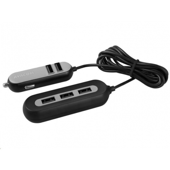 AVACOM CarHUB nabíja 5 zariadení súčasne. Má dve časti, ktoré sú spojené 1,5 m dlhým káblom. Prvú časť s dvoma výstupmi USB možno zapojiť do zásuvky zapaľovača automobilu. Ďalšie tri výstupy USB možno pomocou praktického klipu pripevniť za zadné sedadlo, čo umožňuje nabíjanie pre všetkých cestujúcich vo vozidle. Vysoký výstupný prúd nabíjačky (2,4 A na port a 10,8 A celkovo) a výkon 54 W zaručujú bezproblémové nabíjanie náročných zariadení - smartfónov, tabletov alebo navigácií.