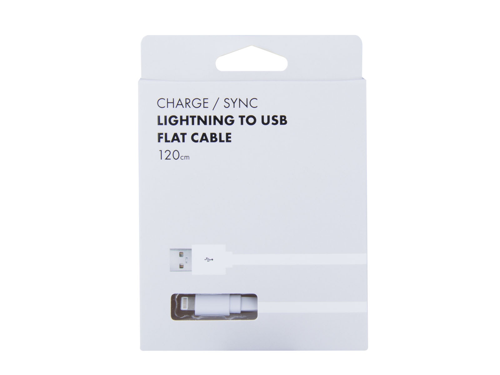 dátový a nabíjací kábel s konektorom Lightning. Umožňuje prenášať údaje medzi Macom/PC a iPhonom, iPadom alebo iPodom. Dĺžka kábla je 120 cm. Plochý profil kábla zabraňuje zamotávaniu.