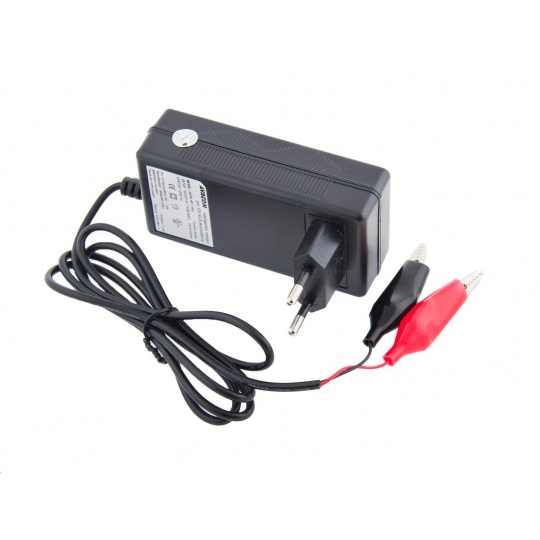 Mikroprocesorom riadená trojstupňová nabíjačka 12V/0,8A pre batérie SLA AGM/GEL s kapacitou 3-10Ah. Táto nabíjačka sa používa na nabíjanie bezúdržbových, hermeticky uzavretých AGM/GEL batérií a je určená na použitie v suchých a vetraných miestnostiach. Samotný proces nabíjania je riadený elektronikou, takže nehrozí prebitie batérie. Nabíjačku je možné použiť aj ako údržbovú nabíjačku, t. j. je možné ju pripojiť k batérii aj po rozsvietení zelenej LED. Upozornenie: Nabíjačku odporúčame používať iba na dobíjanie batérií s kapacitou zodpovedajúcou technickým špecifikáciám produktu. Pri nabíjaní batérií s vyššou kapacitou sa doba nabíjania výrazne predlžuje. Pri použití pre batériu s nižšou kapacitou hrozí nebezpečenstvo poškodenia. Parametre NAPB-WI12-800: Vstupné napätie: 100-240V, 50-60Hz. Maximálny výkon: 30W. Menovité výstupné napätie: 12Vdc Rozsah výstupného napätia: 13,5 V DC - 13,8 V DC Maximálny nabíjací prúd: 0,8 A (+/- 5 %). Odporúčaná kapacita batérie: 3Ah - 10Ah. Rozsah prevádzkových teplôt: 0 - 40°C. Rozmery: 96 x 63 x 48 mm. Hmotnosť: 120g. Elektronická ochrana výstupu: proti skratu a proti prepólovaniu. Typická doba nabíjania: 4 - 6 hodín. Všeobecný návod na použitie a základné technické údaje NAPB-WI12-800: 1) Pripojte konektory nabíjačky k batérii. 2) Skontrolujte správne pripojenie, konektor označený červenou farbou musí byť vždy pripojený k pólu + batérie. 3) Zapnite nabíjačku do elektrickej siete. 4) Po zapnutí do elektrickej siete sa rozsvieti červená LED - batéria sa začne nabíjať. Doba nabíjania batérie závisí od jej kapacity v Ah (pozri odporúčanú kapacitu batérie). 5) Upozornenie: dlhodobé alebo časté používanie tejto nabíjačky pre batérie s kapacitou menšou ako 3 Ah môže poškodiť batériu v dôsledku vysokého nabíjacieho prúdu alebo skrátiť jej životnosť! Pri použití tejto nabíjačky pre batérie s kapacitou viac ako 10 Ah sa doba nabíjania predĺži, ale nehrozí poškodenie alebo skrátenie životnosti batérie. 6) Rozsvieti sa zelená LED - batéria je nabitá. 7) Keď sa rozsvieti zelená LED, odpojte nabíjačku od elektrickej siete a odpojte konektory od batérie. Nabíjačka je automatická, čo znamená, že proces nabíjania je riadený automaticky, kým nie je batéria úplne nabitá. Vďaka automaticky riadenému procesu nabíjania je však možné túto nabíjačku použiť ako udržiavaciu nabíjačku, t.j. je možné ju pripojiť k batérii aj po rozsvietení zelenej LED. Nabíjačka sa predáva ako kompletné riešenie na nabíjanie lítium-iónovej batérie BLS-1, BLS-50 alebo BLS-5 alebo ekvivalentnej. Indikácia stavu batérie svetelnou diódou. Pre batériu: OLYMPUS: BLS-1, BLS-5, BLS-50, PS-BLS1, PS-BLS5 Obsah balenia: CZ manuál, SK manuál, EN manuál, (základňa, nabíjací adaptér, EU zásuvkový adaptér).