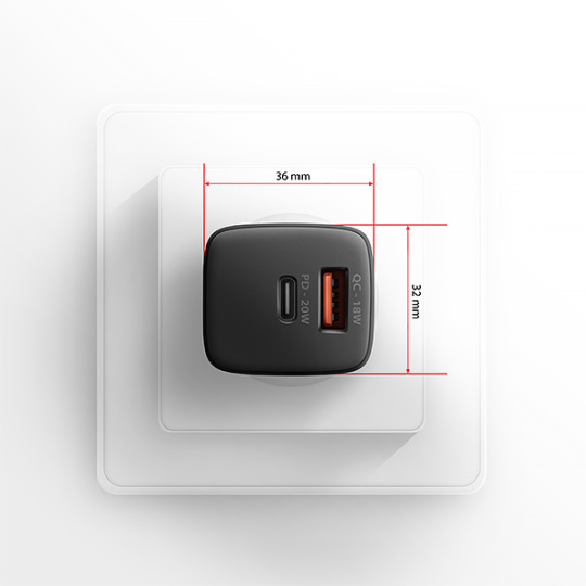 Kompaktná sieťová nabíjačka AXAGON ACU-PQ20 umožňuje rýchle nabíjanie až dvoch mobilných zariadení súčasne. S celkovým výkonom 20 W dokáže nabíjačka nabíjať telefóny, tablety a ďalšie mobilné zariadenia najvyššou možnou rýchlosťou. Adaptér ponúka nielen štandardný USB-A konektor, ale aj obojstranný USB-C konektor.