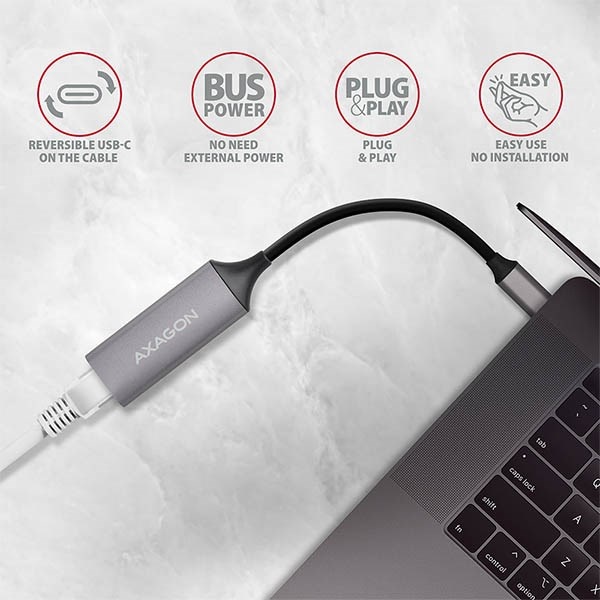 AXAGON ADE-TRC, USB-C 3.2 Gen 1 - Gigabitová sieťová karta Ethernet, automatická inštalácia, titánovo šedá
