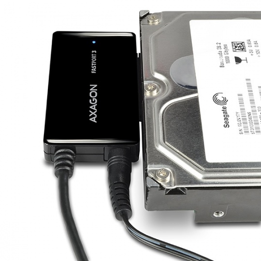 Univerzálný all-in-one adaptér AXAGON ADSA-FP3 FASTport3 s USB 3.0 a SATA 6G rozhraním určený pre jednoduché pripojenie ľubovoľného SATA disku alebo mechaniky.