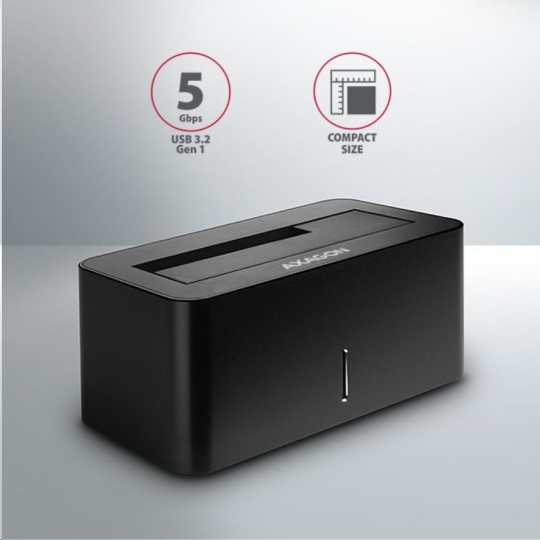 SuperSpeed USB dokovací stanice AXAGON ADSA-SN COMPACT HDD/SSD DOCK připojí k počítači snadno a rychle libovolný SATA disk.