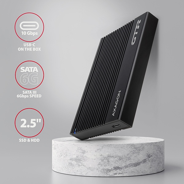 AXAGON EE25-GTR, USB-C 10Gbps - SATA 6G 2.5" RIBBED box, čierny
