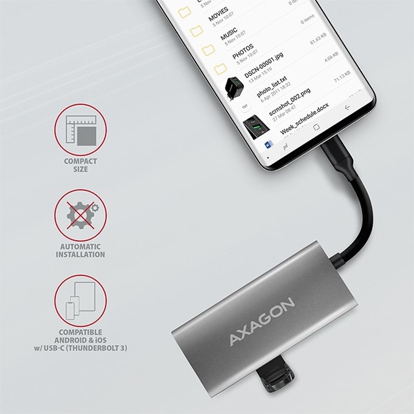 Takto môžete používať svoje existujúce periférne zariadenia USB bez toho, aby ste museli kupovať nové. Vďaka funkciám Plug and Play a Hot Plug je samotné zapojenie rozbočovača veľmi jednoduché bez zložitej inštalácie a periférne zariadenia môžete ľahko pripájať a odpájať aj počas chodu počítača. Rozbočovač sa nevyhýba ani pripojeniu k telefónom s konektorom USB-C. K telefónu môžete pripojiť napríklad flash disk, klávesnicu alebo myš.