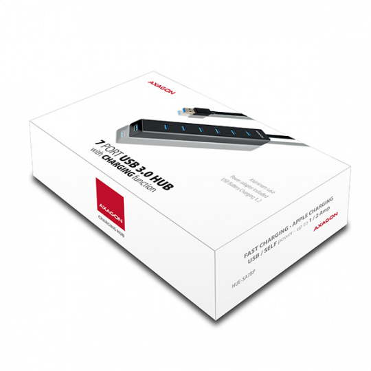 AXAGON HUE-SA7BP, 7x USB 3.0 ALU CHARGING hub, vr. AC adaptéra, kábel USB-A 40cm