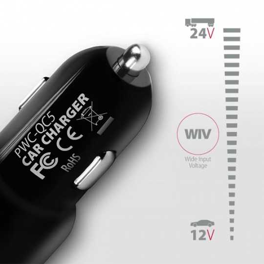 • Wide Input Voltage - funkcia širokého rozsahu vstupného napätia, chráni adaptér proti podpätiu a prepätiu na vstupe a umožní automatické rozpoznanie 12V alebo 24V palubného rozvodu.