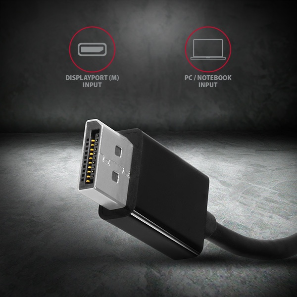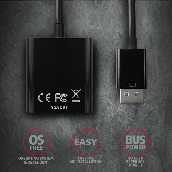 DisplayPort -> VGA aktívny adaptér AXAGON RVD-VGN pre pripojenie staršieho VGA monitora/TV/dataprojektoru k počítaču alebo inému zariadeniu s výstupom Display Port.