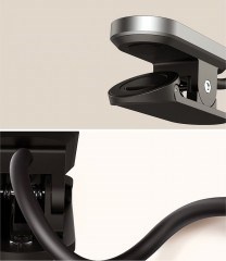 Lampu môžete namontovať nielen pomocou spony. Po uzamknutí môže slúžiť ako podstavec a stabilne stáť na stole.