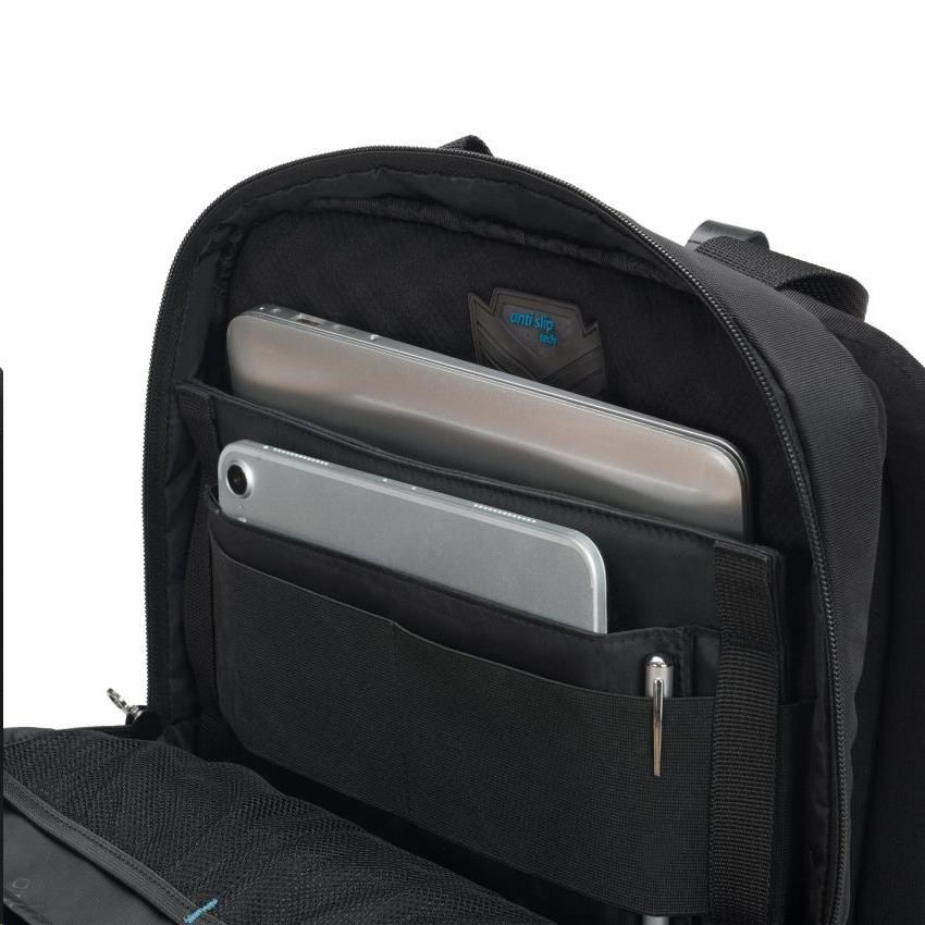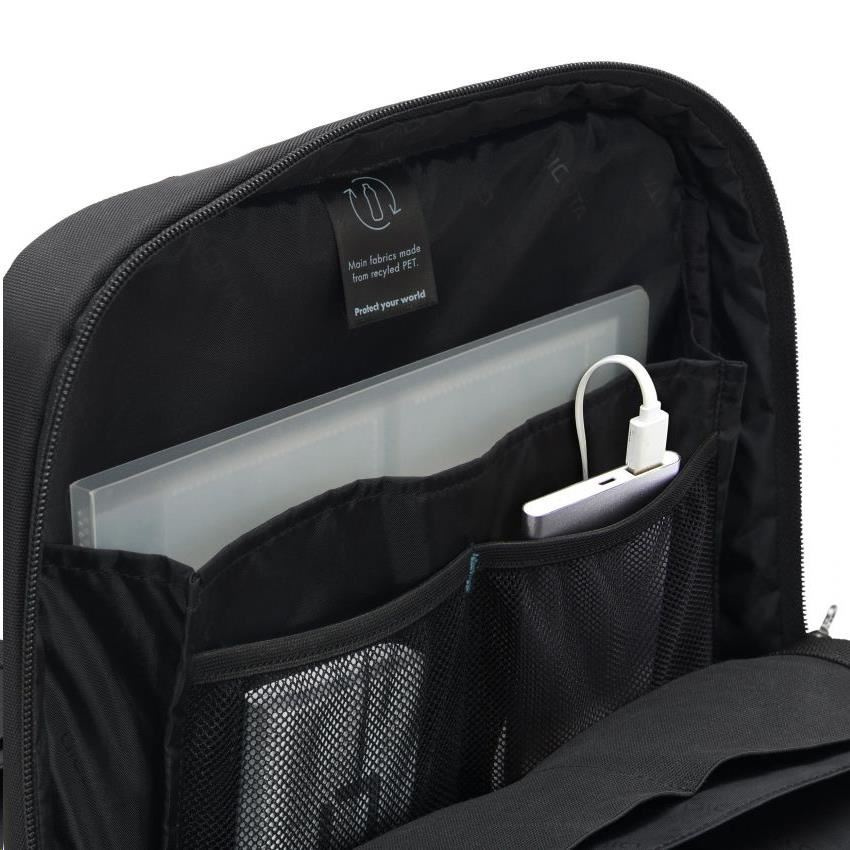 S batohom ECO Backpack Slim PRO cestujete "1. triedou". Batoh vás bude spoľahlivo sprevádzať všade, kam pôjdete, a spĺňa najvyššie štandardy kvality, funkčnosti a ochrany. Batoh Slim PRO je vyrobený z vysokokvalitného recyklovaného PET a chráni našu planétu - je ideálny pre ekologicky zmýšľajúcich spotrebiteľov. Hlavný materiál tvorí 13 recyklovaných PET fliaš. Vďaka zmyslu pre detail je táto taška DICOTA vaším najspoľahlivejším obchodným partnerom.