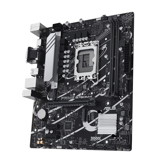 ASUS Prime B760M-K, an Intel® B760 LGA 1700 mATX motherboard with PCIe 4.0, two PCIe 4.0 M.2 slots, DDR5, Realtek 2.5Gb Ethernet, VGA, HDMI™, SATA 6 Gbps, front USB 3.2 Gen 1, Aura Sync