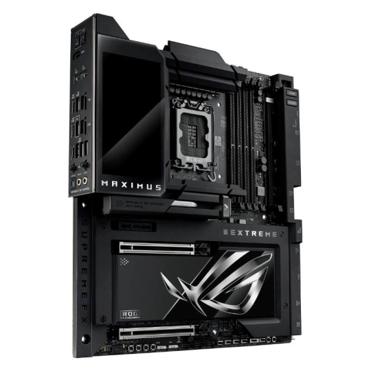 ROG Maximus Z890 Extreme je vrcholom najmodernejšej technológie a výkonu základnej dosky. Objavte horné limity procesorov Intel® Core™ Ultra Series 2, DDR5 modulov, grafických kariet PCIe® 5.0, NVMe úložísk, USB connectivity, Thunderbolt™ funkcionality a ďalších – všetko v štýlovom balení s farebným 5-palcovým LCD displejom, ktorý môže zobrazovať živé obrázky alebo štatistiky systému podľa vášho osobného vkusu.