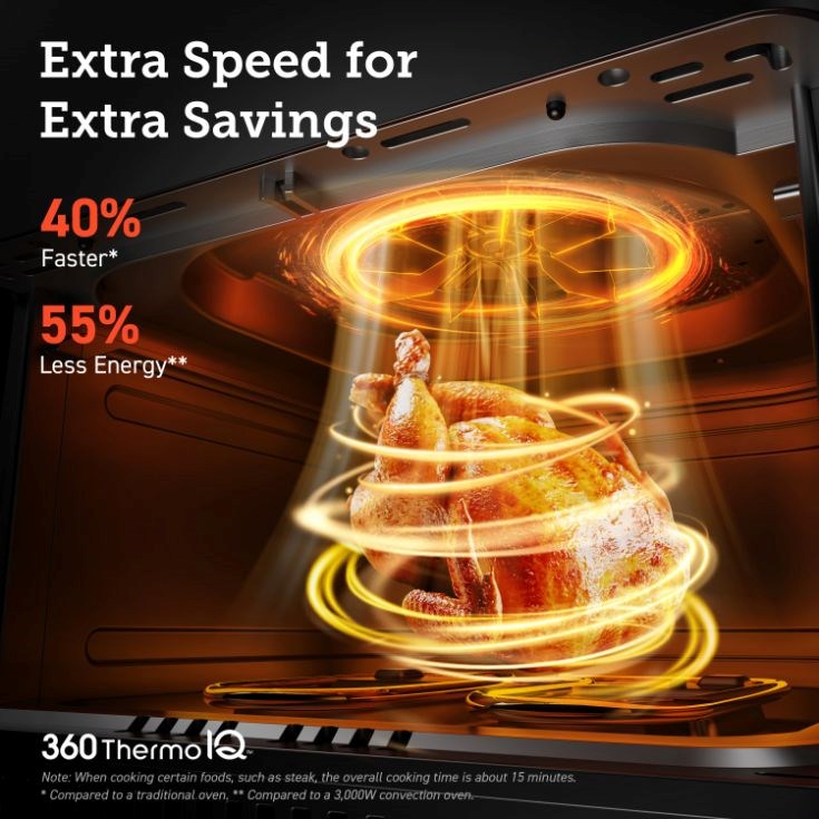 • Technológia THERMO IQ 360° HEAT CIRCULATION zabezpečuje rovnomerné varenie bez nutnosti miešania alebo otáčania jedla