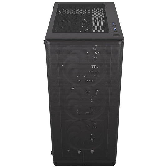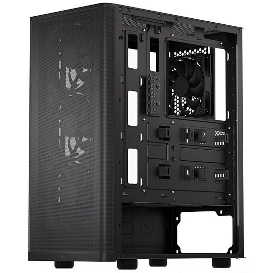 Skriňa formátu Middle Tower s priehľadnou bočnicou z tvrdeného skla ponúka dve 2,5" pozície pre SSD disky a jednu 3,5" pozíciu pre pevný disk. Na hornom okraji sa nachádza dva USB 3.0 porty, slúchadlový výstup a audio vstup pre mikrofón. Vybavená je štyrmi 120 mm ventilátormi, ktoré spolu s perforovaným čelným panelom zabezpečujú dostatočné prúdenie vzduchu. Promyšlené riešenie umožňuje pohodlné umiestnenie az 360 mm dlhého výmenníka vodného chladenia na prednej strane. Vo skrini je dostatok priestoru pre chladič CPU do výšky až 161 mm a grafickú kartu s dĺžkou až 315 mm. Dodáva sa bez zdroja. Súčasťou je tiež sada prachových filtrov.
