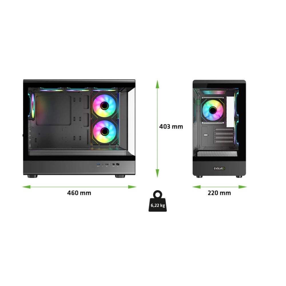 BAZAR - EVOLVEO Ursus, skříň mATX, 6x ARGB ventilátor 120mm, skleněná bočnice + přední panel - Poškozený obal (Komplet)