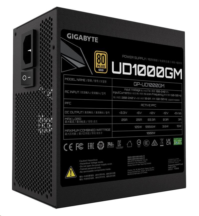 BAZAR - GIGABYTE zdroj UD1000GM, 1000W, 80+ Gold, 120mm fan - Po opravě (Náhradní krabice)
