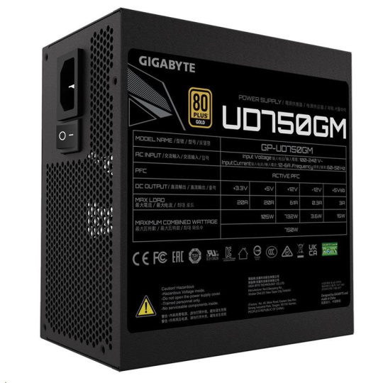 BAZAR - GIGABYTE zdroj UD750GM, 750W, 80+ Gold, 120mm fan - Po opravě (Komplet)
