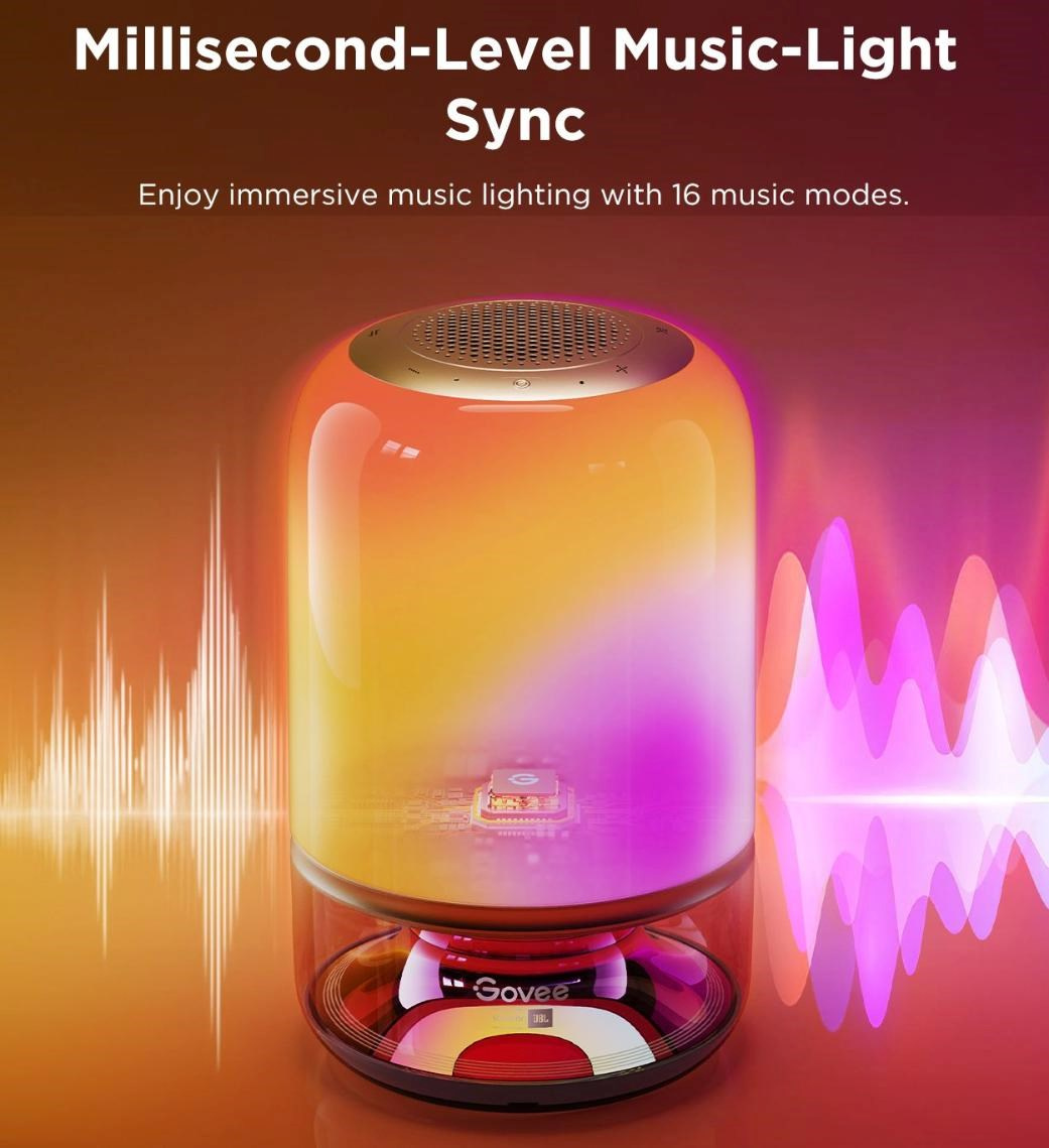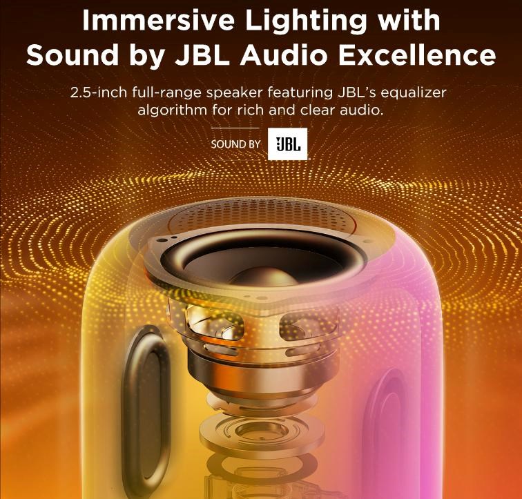- Pohlcujúci zážitok: Kombinuje živé RGBICWW osvetlenie s prémiovým zvukom od JBL.