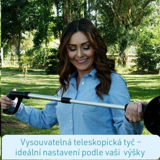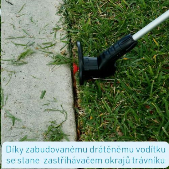 Inovativní technika úpravy trávníku: funguje s běžnými páskami na vázání kabelů Ultra lehký, bez kabelu, dobíjetelný: pro flexibilní použití v zahradě Váží méně než 900 gramů - můžete jej zvednout i jednou rukou Podrobný popis produktu Hammersmith Bionic Trimmer upraví váš trávník zpět do formy. Inovativní zastřihávač funguje pomocí běžných pásek na vázání kabelů a postará se o plynulou práci kterou nebudete muset přerušit, abyste pracně novou strunu do strunové kosačky. Zároveň ušetříte spoustu peněz! Ultra lehký pro flexibilní použití v zahradě Bionic Trimmer je ultra lehký, dobíjetelný, používáte jej bez kabelu, tedy je jeho použití v zahradě absolutně flexibilní. Na jeho obsluhu stačí jedna ruka, je lehký jako pírko, váží méně než 900 gramů. Ergonomická rukojeť a vysouvatelná teleskopická tyč Ergonomická rukojeť se příjemně drží a usnadní vám nakládání s přístrojem. Vysouvací teleskopická tyč vám umožní přístroj přizpůsobit vaší výšce. Díky zabudovanému vodítku se z přístroje stane praktický zastřihovač rohů trávníku. Odteď můžete ve vaší zahradě zastřihovat rohy trávníku bez toho, abyste museli vytahovat další přístroje. Bezpečný, bezkabelový s dobíjecí vysoce výkonnou baterií Hammersmith Bionic Trimmer je vybaven výkonnou lithium - iontovou baterií, takže jej nemusíte únavně doplňovat benzínem nebo olejem. Stačí jej zasunout do zástrčky a dobít. Díky zabudovanému vodítku se z přístroje stane praktický zastřihovač rohů trávníku. Odteď můžete ve vaší zahradě zastřihovat rohy trávníku bez toho, abyste museli vytahovat další přístroje. Ochranný kryt umožňuje rychlé a bezpečné použití. Váš trávník upravíte rychle a potichu. Přístroj můžete používat vertikálně i horizontálně. Detaily produktu: Rozměry: 985 mm x 173 mm x 180 mm Pásky na vázání kabelů: 97,38 mm x 4,81 mm x 1,6 mm Napětí akumulátoru: 7,4 V Kapacita akumulátoru: 2000 mAh, typ: Lithium-iontový Rychlost: 10.000 otáček / min Hluk: 95 dB Nabíjecí adaptér - vstup: 9,5 V, 600 mA Doba úplného nabití: 4 hodiny Doba chodu: max 21 minut Délka kabelu pro nabíjení: 1,8 m Teleskopická rukojeť nastavitelná mezi 70 - 95 cm Váha: 0,9 kg Obsah balení Obsah balení: 1 x Hammersmith Bionic Trimmer přístroj 24 x páska na vázání kabelů.