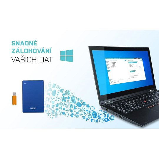 1x USB-C port pre pripojenie k zariadeniu s USB-C alebo USB-A rozhraním (prepojovací kábel USB-C a adaptér USB-C na USB 3.0 sú súčasťou balenia)