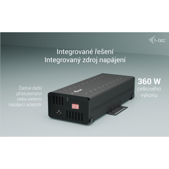 - HUB obsahuje integrovaný napájací adaptér (360 W)