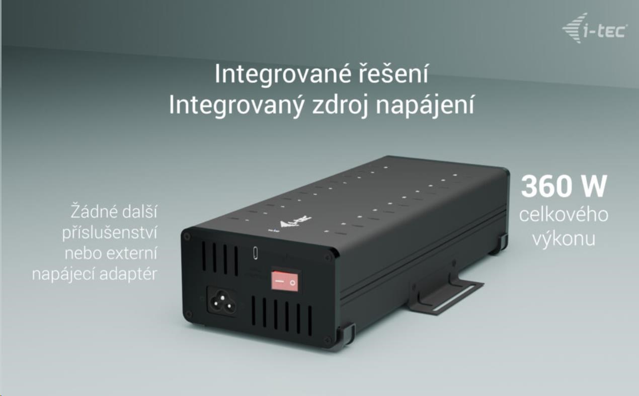 - HUB obsahuje integrovaný napájací adaptér (360 W)
