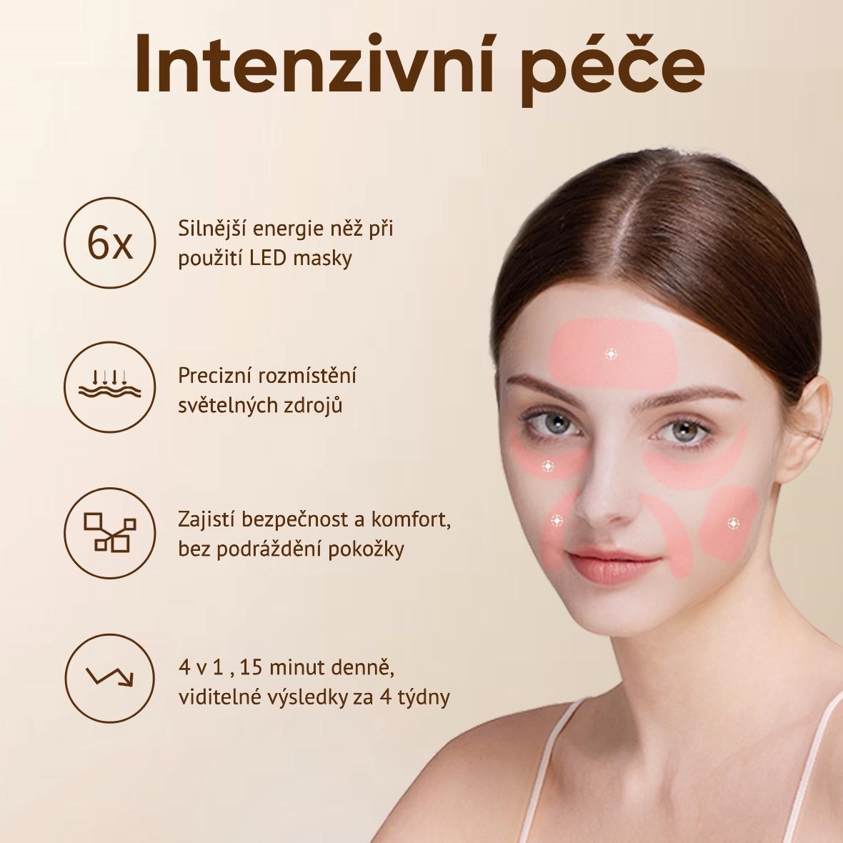 - Účinná domáca terapia – až 6-krát účinnejšia ako bežné LED masky. Patentovaná cielená fototermálna technológia koncentruje svetelnú energiu na presný bod a pôsobí priamo na hlboké vrstvy pokožky.