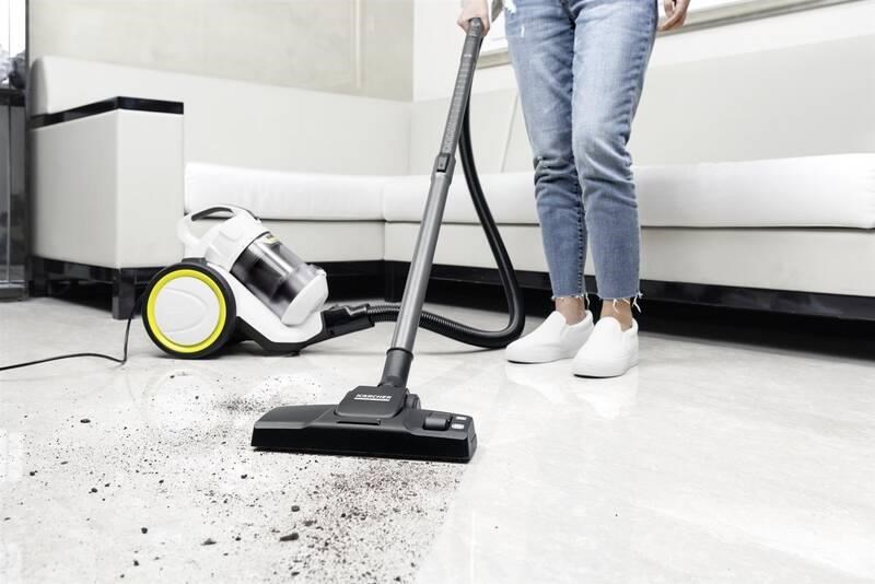Skutočne kompaktný bezvreckový vysávač, to je Kärcher VC 3. Disponuje výkonom 700 W a multicyklónovou technológiou. Priehľadná nádoba na prach má objem 0,9 litrov a umožňuje rýchlu vizuálnu kontrolu. Vysávač je ideálny pre menšie byty a domácnosti. Použitie je vhodné pre všetky typy podláh vrátane kobercov. Šterbinová hubica pomôže s upratovaním odlehlých kútov a ťažko dostupných miest. Hlavica s mäkkým kefou je vhodná pre jemné povrchy a čalúnenie.
