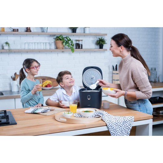 Nielen že stlačením jediného tlačidla pripravíte dokonale všetky druhy ryže, ale môžete ryžovar využiť aj na ďalšie jedlá. 6 šikovných prednastavených funkcií - Slow cook, Quick cook, Polievka, Kaša, Low Sugar ryža, Zelenina - si poradí aj s prípravou strukovín či ovsených kaší. Ak by vám nastavené hodnoty nevyhovovali, čas aj funkciu upraviť manuálne. Občas je potrebné jedlo udržať teplé, čo zvládne funkcia Keep Warm. Na začínajúcu inšpiráciu sme ku ryžovaru pribalili kuchárku, ktorá obsahuje 5 zdravých a jednoduchých receptov.