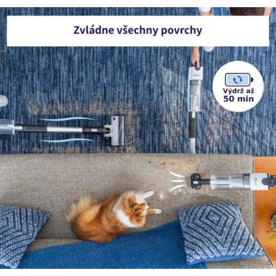 Tyčový vysávač Levoit je navrhnutý tak, aby vám čo najviac uľahčil upratovanie domácnosti, či už ju zdieľate so štvornohým alebo dvojnohým domácim miláčikom. Vysávač je vybavený rotačnou kefou s kombináciou gumových a textilných lamiel, ktorá bola navrhnutá tak, aby sa na nej nezachytávali zamotané chlpy alebo srsť. Kefa je zároveň účinná a zachytí maximálne množstvo nečistôt. Vysávač pracuje s 22,2V vymeniteľnou batériou s kapacitou 2200 mAh s indikáciou nabitia. Motor s výkonom 180 W je nezvyčajne tichý, v bežnej prevádzke vydáva 74 dB a v režime Turbo 81 dB. S plne nabitou batériou môže vysávač pracovať až 50 minút, čo umožňuje upratať celú domácnosť na jedno nabitie. Upratovanie s vysávačom LVAC 200 je príjemné vďaka jeho veľmi nízkej hmotnosti 1,45 kg. Vďaka tomu s ním ľahko odstránite pavučiny zo stropu, prach zo žalúzií alebo nečistoty pod nábytkom. V balení nájdete dlhú a krátku rukoväť, rotačnú kefu, kefu 2v1 na čalúnenie alebo zvieracie chlpy a štrbinový nadstavec 2v1 s kefou. Získate tak dokonalú sadu nástrojov na kompletné čistenie. Vysávač Levoit LVAC si hravo poradí so všetkými povrchmi, či už ide o koberce, tvrdé podlahy alebo čalúnenie. Kefový nástavec je vybavený aj LED svetlom, takže vám umožní pracovať v tmavých kútoch a navyše osvetlí prítomné nečistoty. Vo vysávači sa nachádza 5-násobný filtračný systém, ktorý odstraňuje častice s veľkosťou od 0,3 mikrometra. Nečistoty sa zhromažďujú v 0,75l nádobe s mechanizmom na jednoduché a hygienické vyprázdňovanie. Filtre a kefa sú ľahko vyberateľné a umývateľné.