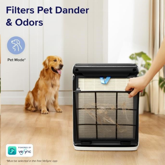 Táto čistička vzduchu je ideálna pre majiteľov domácich zvierat, pretože jej veľký vstup vzduchu v tvare písmena U pomáha predchádzať upchávaniu srstou, takže filtračný systém môže vždy účinne plniť svoju úlohu. Stačí klepnúť na režim Pet Mode v bezplatnej aplikácii VeSync a čistička Vital 100S bude striedavo používať stredné a vysoké otáčky, aby sa znížil zápach a odstránila sa srst domácich zvierat. Tým udržíte svoj domov svieži a energeticky úspornejší. Zároveň sú najväčšie nečistoty zachytené na umývateľný predfiltr, ktorý jednoducho umyjete a ušetríte na opotrebovaní filtra a tým aj na vašich financiach.
