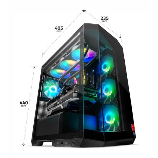 Moderná skriňa s ARGB podsvietením, 360° pohľadom na komponenty a výborným prúdením vzduchu. Dizajn, ktorý nezostane bez povšimnutia.