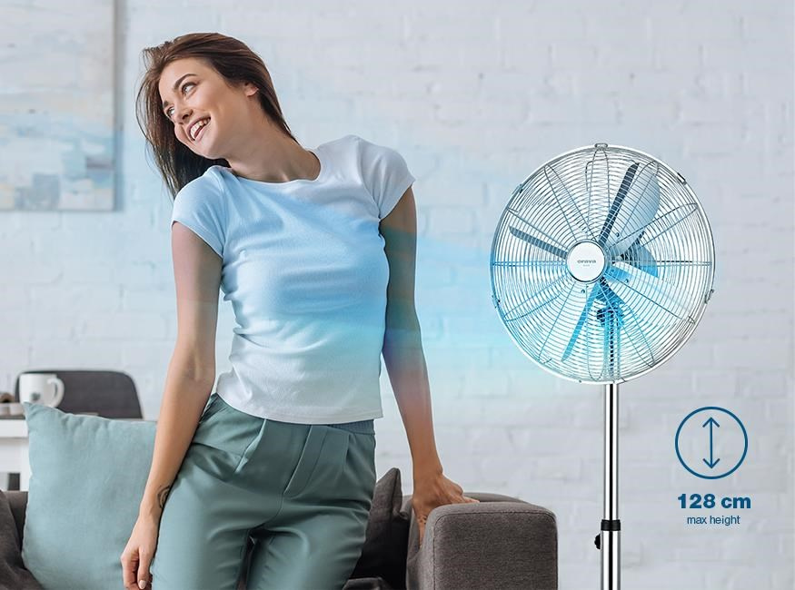 SF-200 X ocení aj detailisti. Celokovový dizajn v spojení s pevnou konštrukciou je zárukou dizajnového prvku vo vašom domove. Výška ventilátora sa dá nastaviť až do 128 cm.