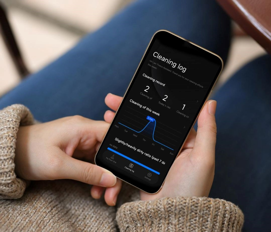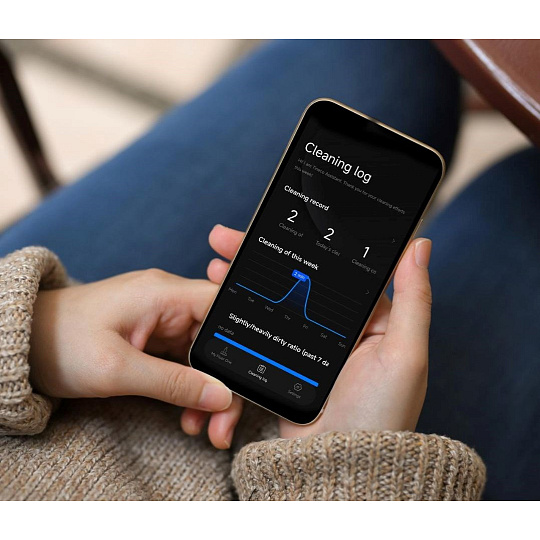Mobilná aplikácia sleduje výkon v reálnom čase, nastaví upozornenia a odporúčania. Hlasový sprievodca vás prevedie upratovaním a pomôže využiť všetky funkcie naplno.