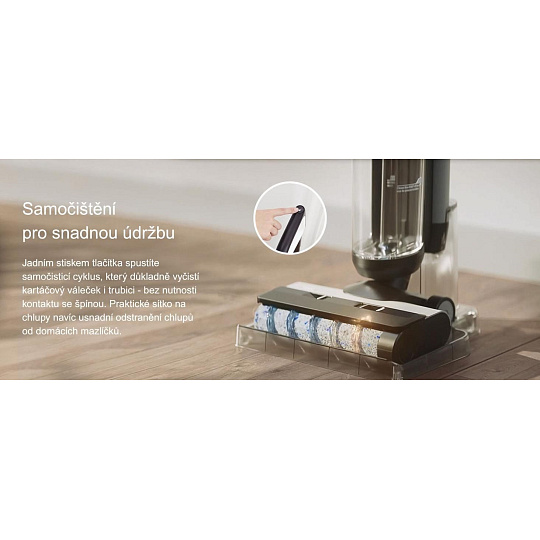 Inovatívny systém MHCBS (Multi-stage Hybrid Cleaning Brush System) zabezpečuje, že kefkový valec zostáva počas celého upratovania vždy čistý – bez šírenia nečistôt späť na podlahu.